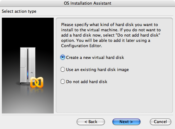 在 Microsoft Windows/Virtual PC 上安装 FreeBSD 的第一步是新增虚拟器。 如下所示,在提示向导中请选择 :
